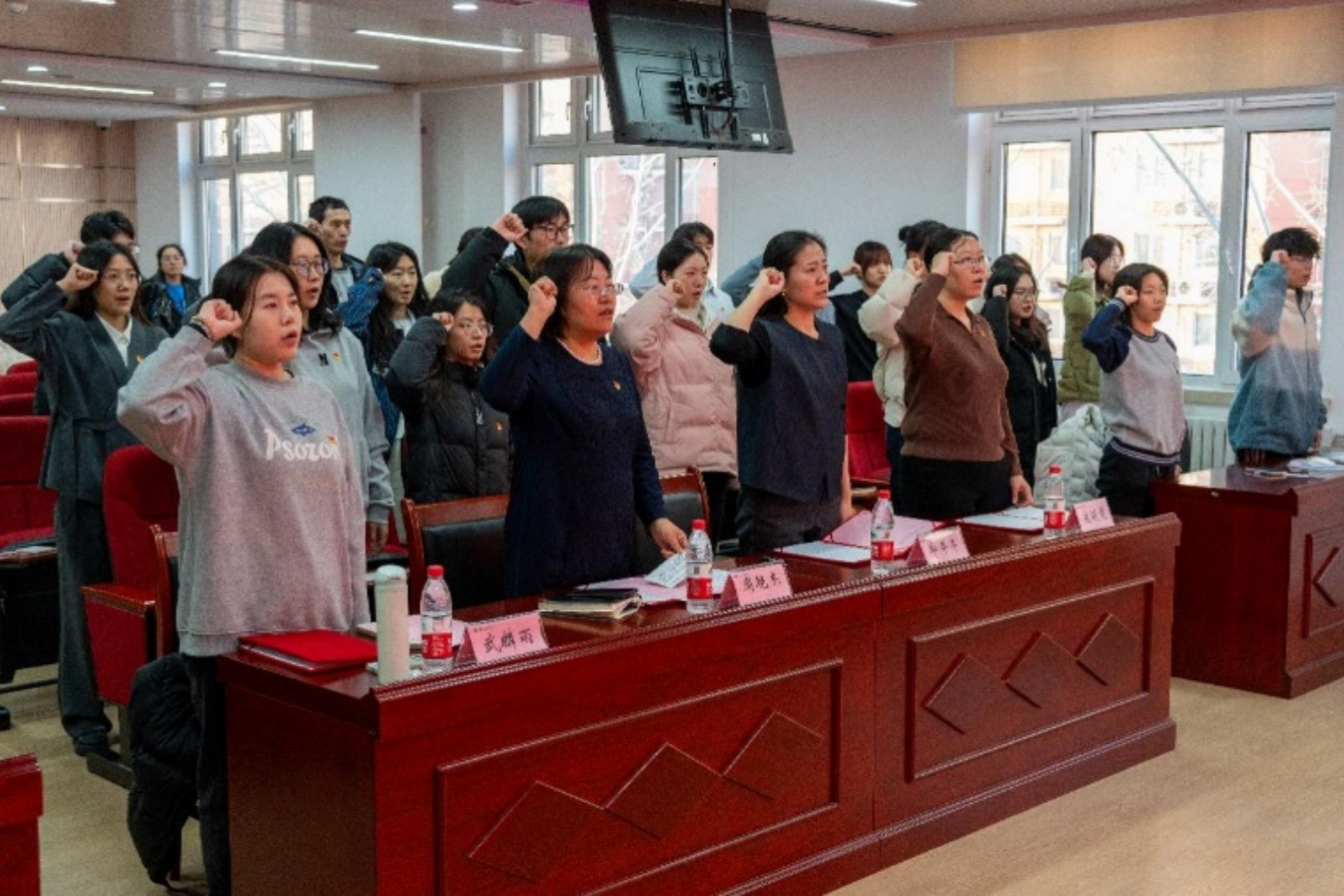 周艳杰带领全体人员面向党旗庄严宣誓。