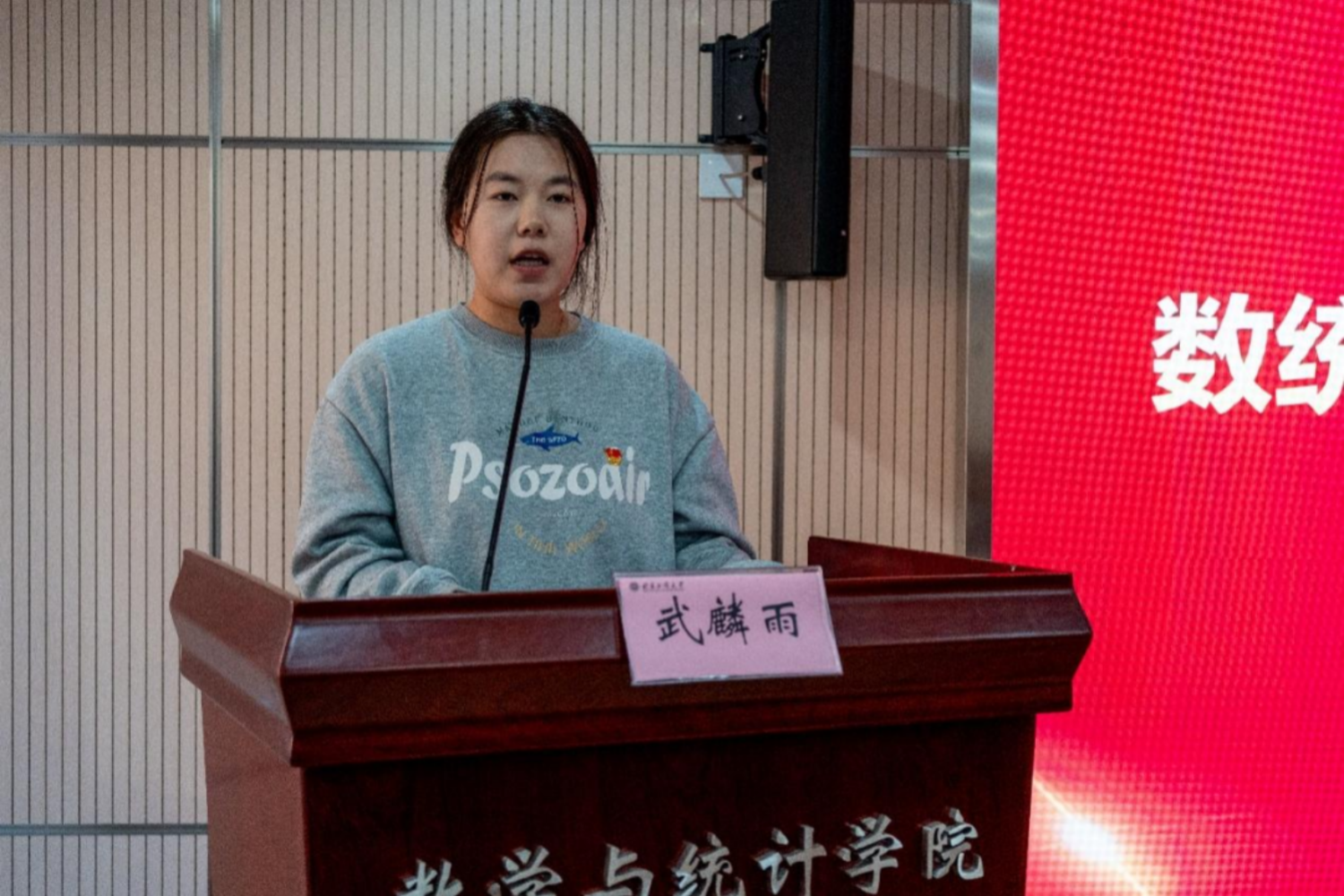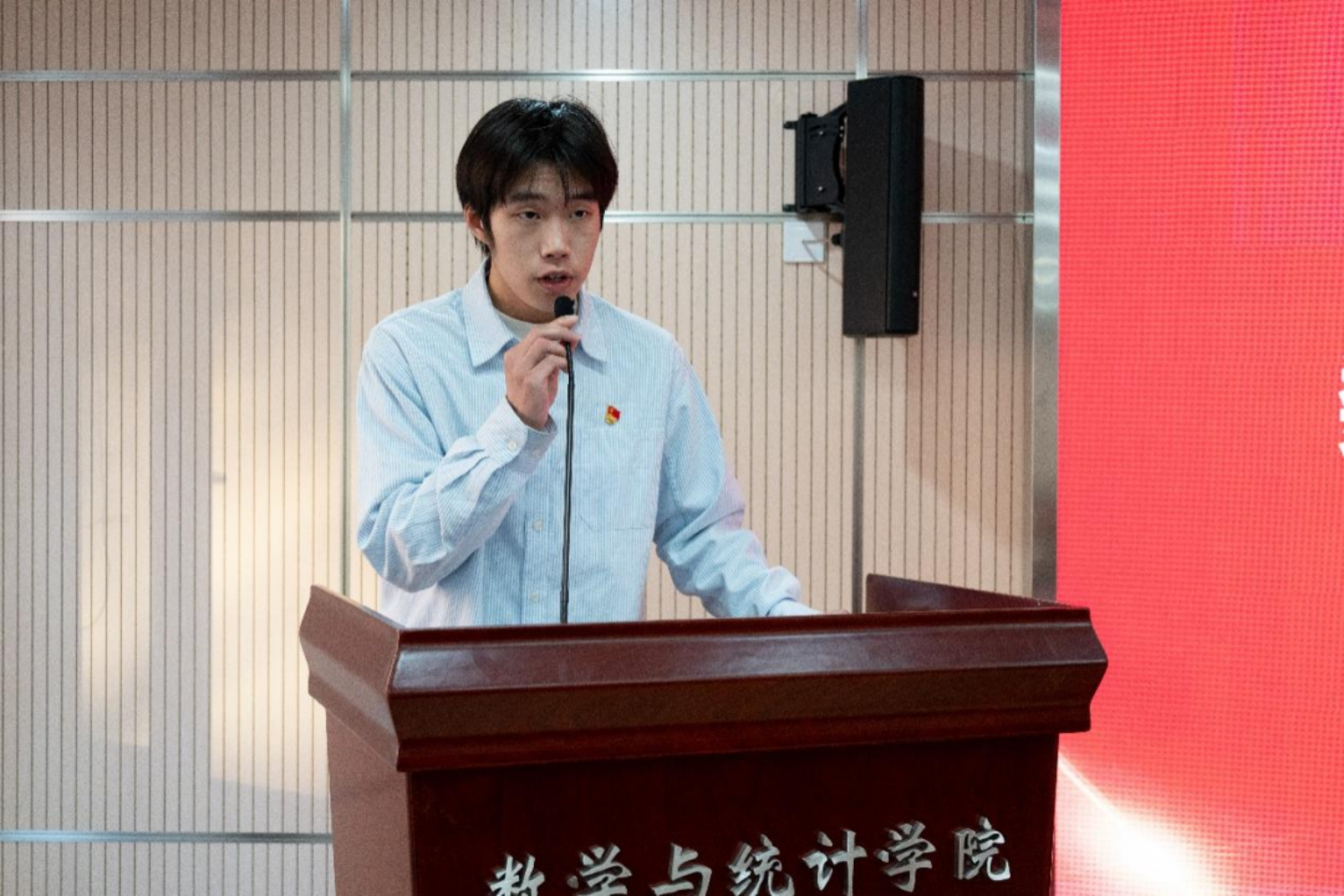 数统研2421班武麟雨作为正式党员代表发言,她对党组织的培养表示感谢,她讲到,入党是人生的重要里程碑,它赋予了我们光荣称号,更赋予了责任与使命。作为新时代员工党员,要时刻做到“两个维护”,学好专业知识,保持学习热情,提升素质,铭记党员身份,践行党的宗旨,服务社会。