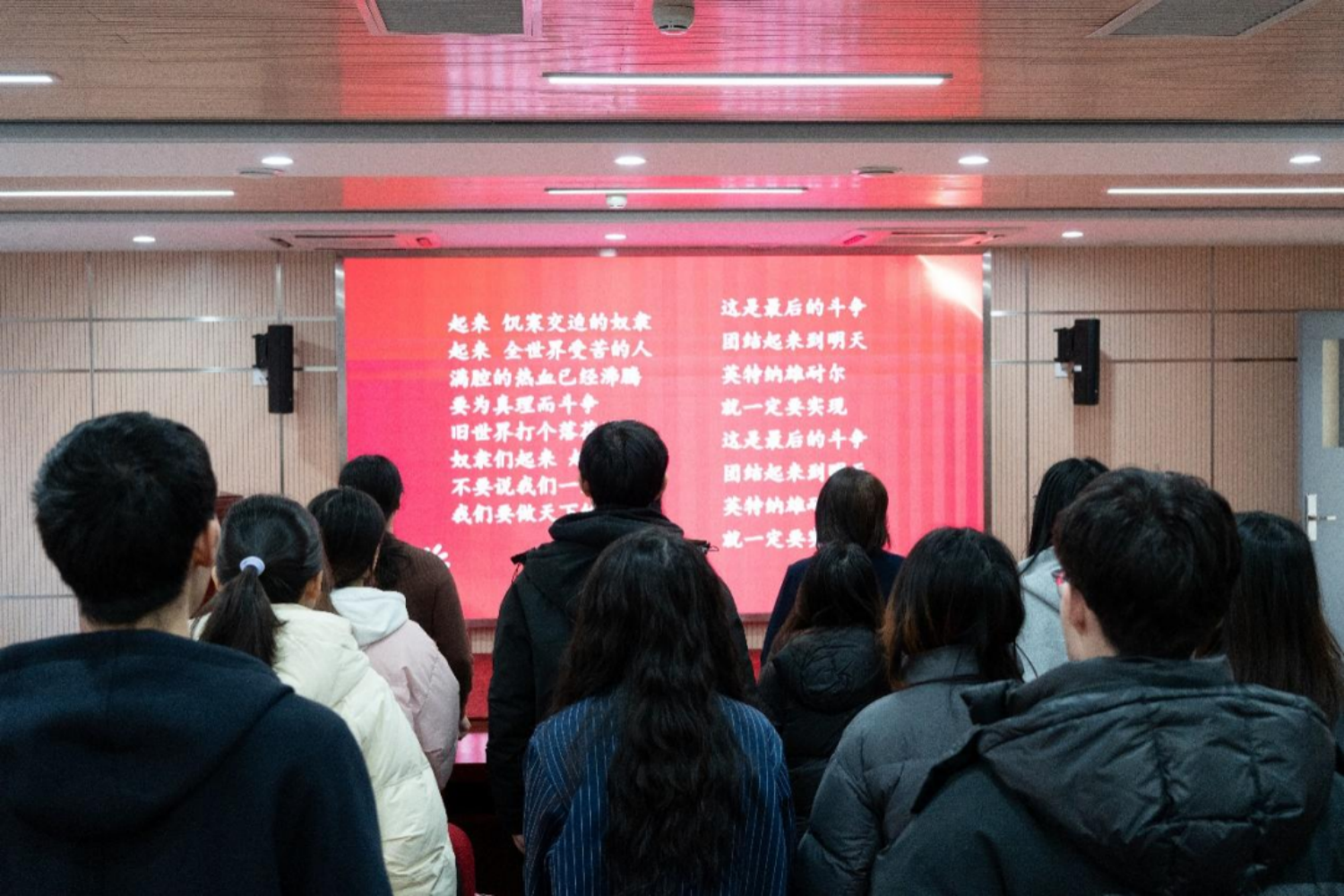 仪式在庄严的国歌中拉开帷幕,全体起立高唱国歌。