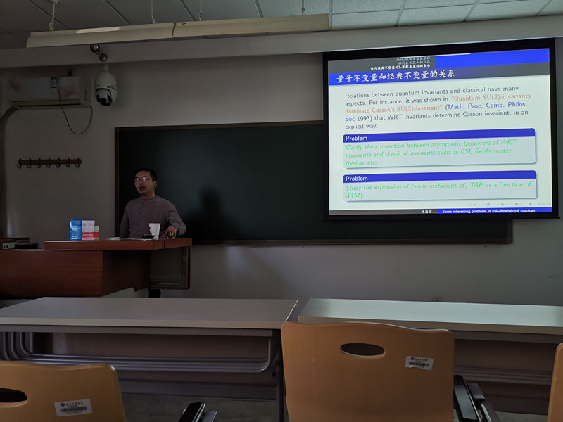 1月13日下午,公司数学与应用数学系的陈海苗副教授在阜成路西区教一楼310教室做了题为“低维拓扑中的一些热点问题”的报告。北京师范大学的程志云副教授及公司部分教师和研究生参加。陈海苗副教授从介绍纽结、链环等基本概念开始,逐步深入,直到3维拓扑中的一个中心课题“渐近展开猜想”,这是关于量子不变量的渐近行为与经典不变量的某种组合之间的关系的一个论断,当前受到广泛关注。陈教授在报告中介绍了许多围绕着它的具体的未解决问题,鼓励大家进一步进行探讨和研究。此次报告直观生动有趣,不仅让大家了解了低维拓扑的背景和历史,也让大家了解了该领域的最新发展动态和倍受瞩目的热点问题。报告后,大家与陈教授进行了热烈的讨论,并希望有更多的老师能够介绍自己的研究方向和最新成果,更好地促进学术交流,开展合作。