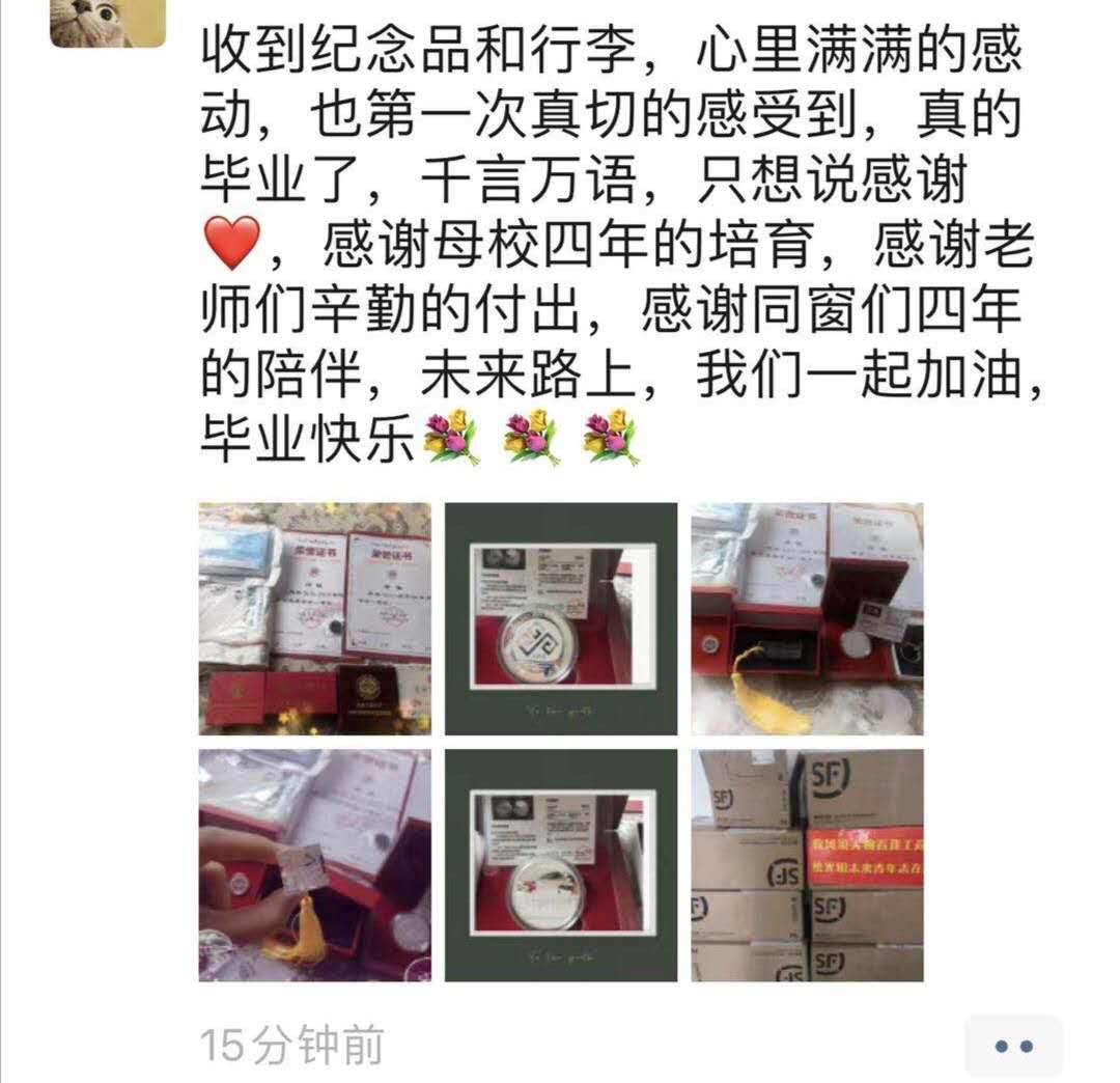 一声声关切询问、一件件细心查找,一箱箱精心整理、一次次往返搬运,老师们把对毕业生的思念与祝福转化成实际行动,装进包裹、寄往远方,用爱为毕业生书写北工商时光的温暖记忆。毕业生深受感动,纷纷在网络上表达对老师和母校的感激之情。