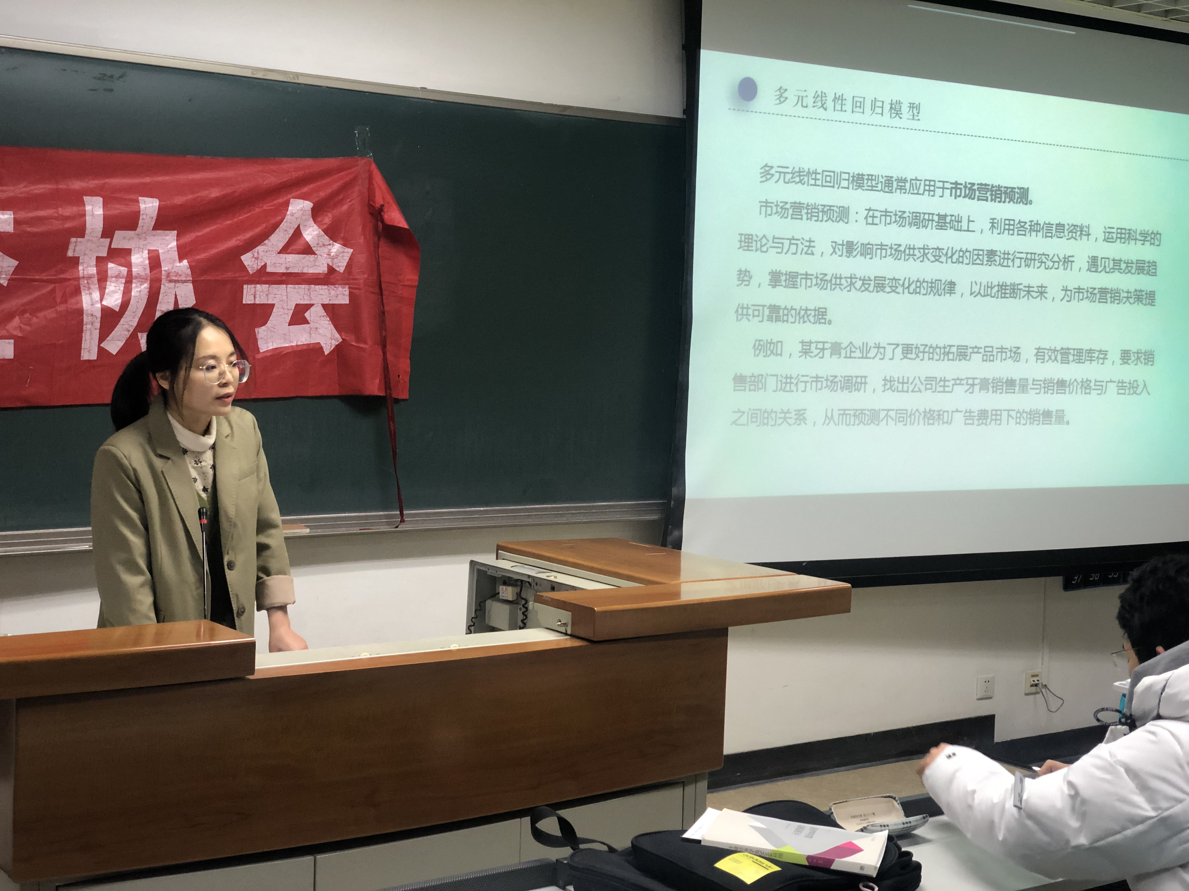 在提问交流环节,同学们勤于思考,踊跃提问,韦佳佳老师对同学们的问题都耐心细致地逐一解答,现场交流氛围热烈。通过这次讲座,让同学们对市场调查分析相关的统计方法有了更深的认识,受益匪浅。