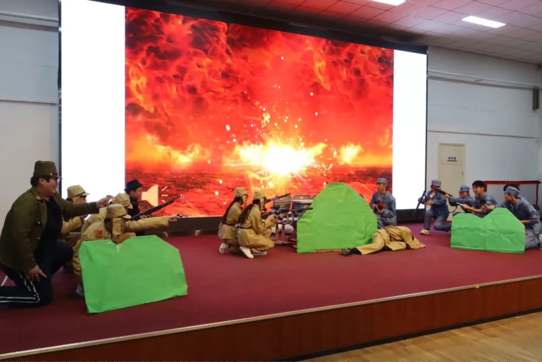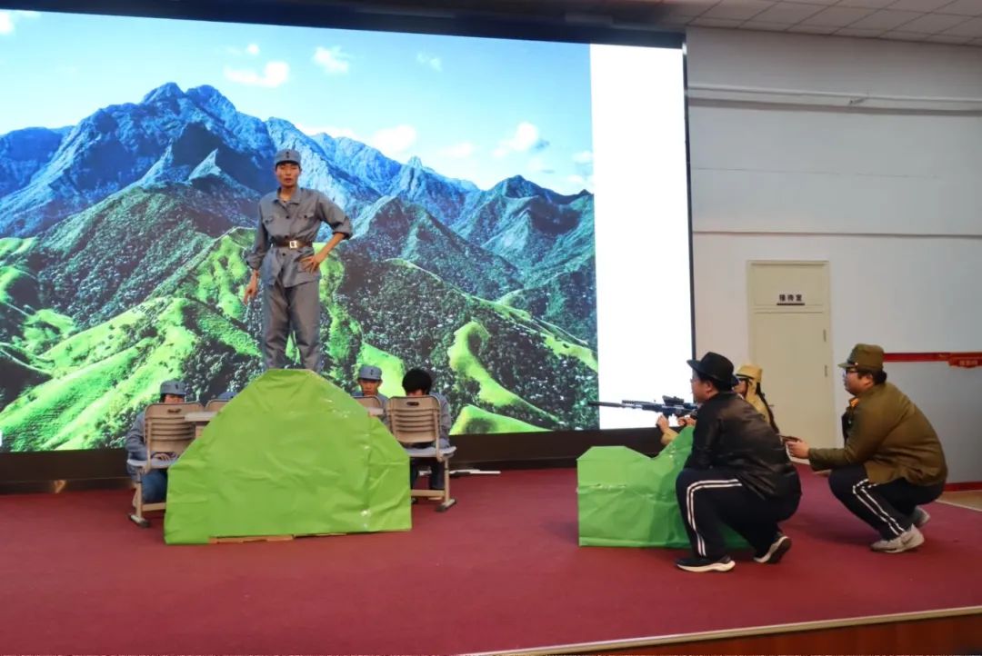 公司员工谢琳、董卉、李佳音、张鑫、马鑫帅、张赫麟表演的情景剧《跨越时空的对话》从新时代青年与新四军、志愿军战士的对话视角诠释了一场新时代青年与革命时期青年战士的世纪交汇,展现了革命战争时期战士不怕牺牲、敢于斗争、忘我奉献的家国情怀和革命精神,以新时代的国家繁荣富强和国泰民安回答革命烈士的共同期盼“这盛世如你所愿”。