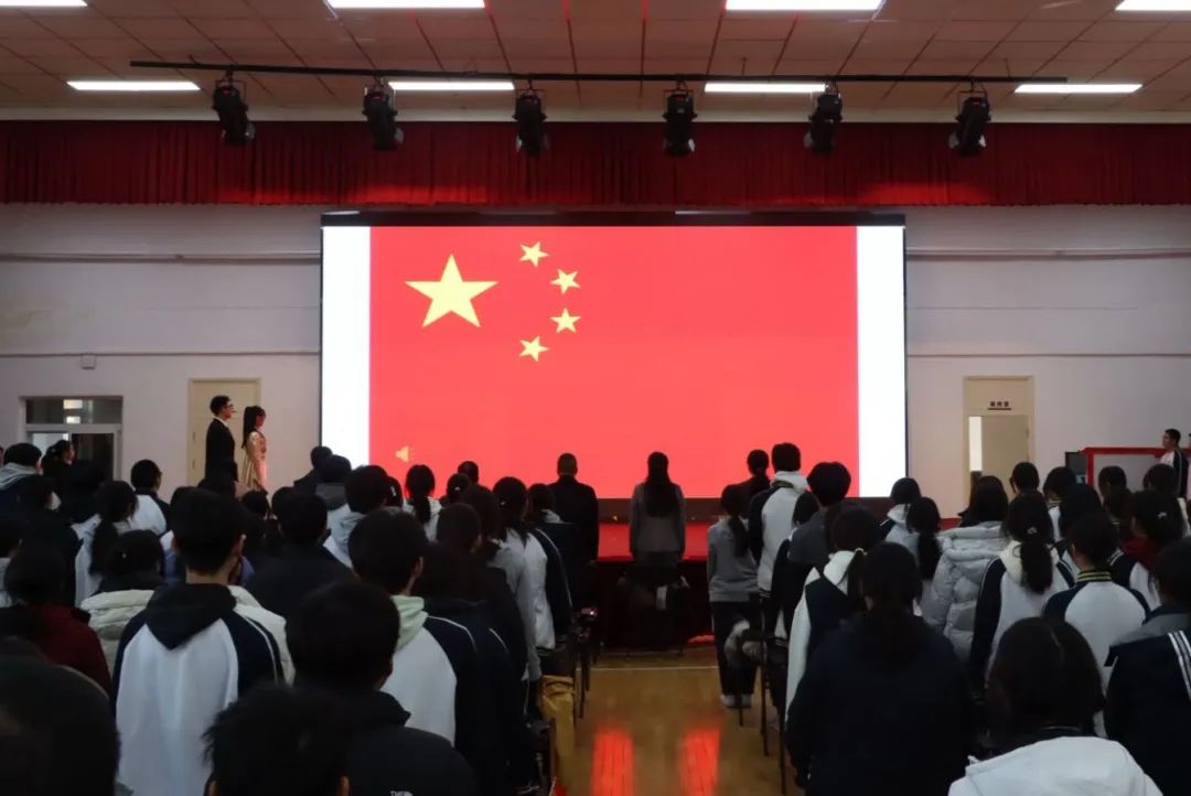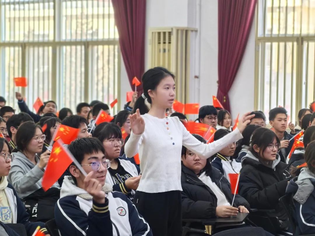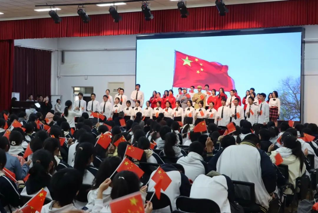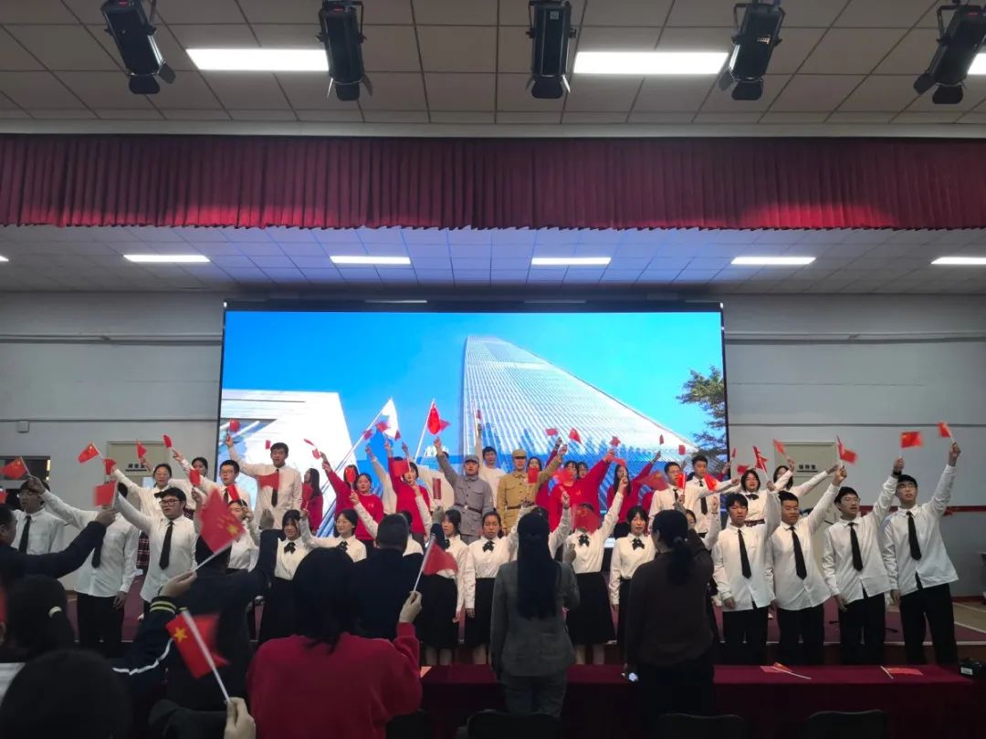 节目最后,公司员工代表与高一(3)班一起合唱《我和我的祖国》,全场师生挥舞红旗,向祖国真情告白,将现场气氛推向高潮。