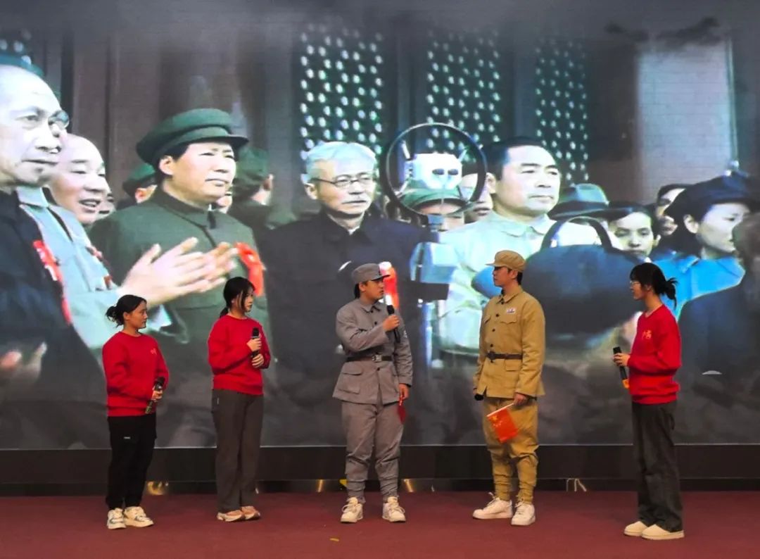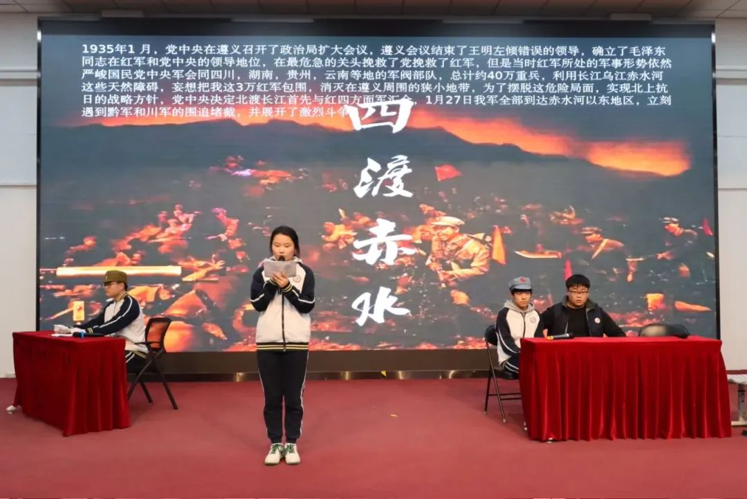 高二(1)班精心准备的情景剧《四渡赤水》,致敬毛泽东同志临危制变,智周万物的无畏气魄,向青年学子展现坚定信念、敢于抗争的赤水精神。
