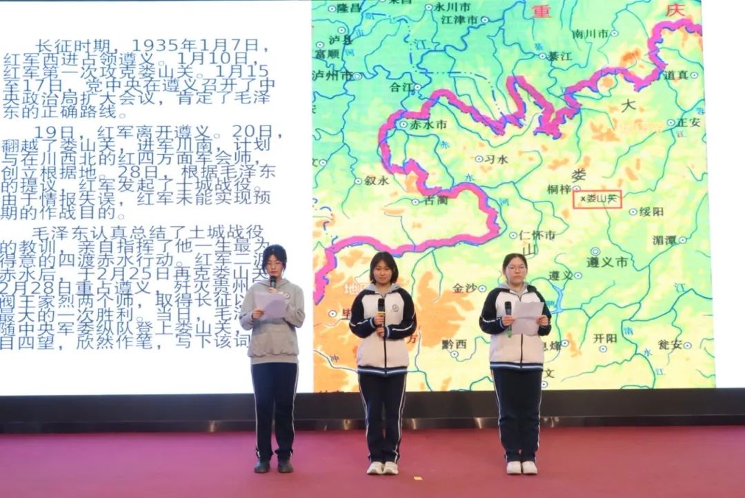 高一(4)班的诗朗诵《忆秦娥•娄山关》交织豪迈与悲壮,以青年之声歌颂伟人革命斗志与博大胸怀。