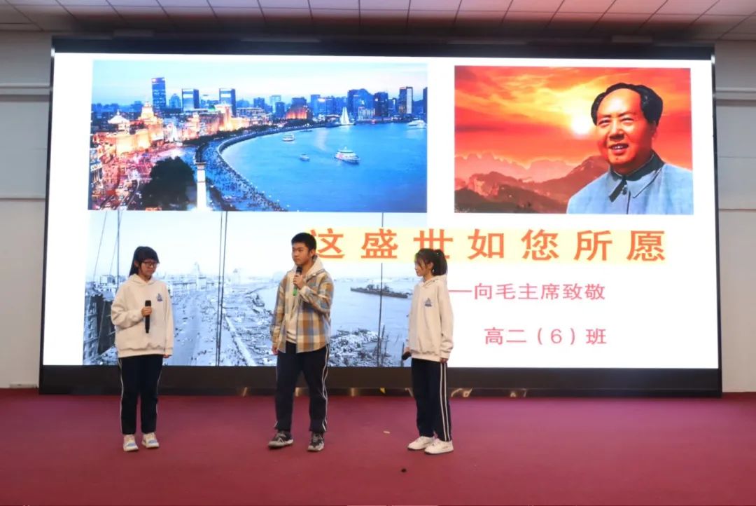 高二(6)班带来情景剧《这盛世如你所愿》,表演致敬毛泽东同志,其愈挫愈勇之精神,启我后辈青年,立志携手用奋斗谱写青春华章。