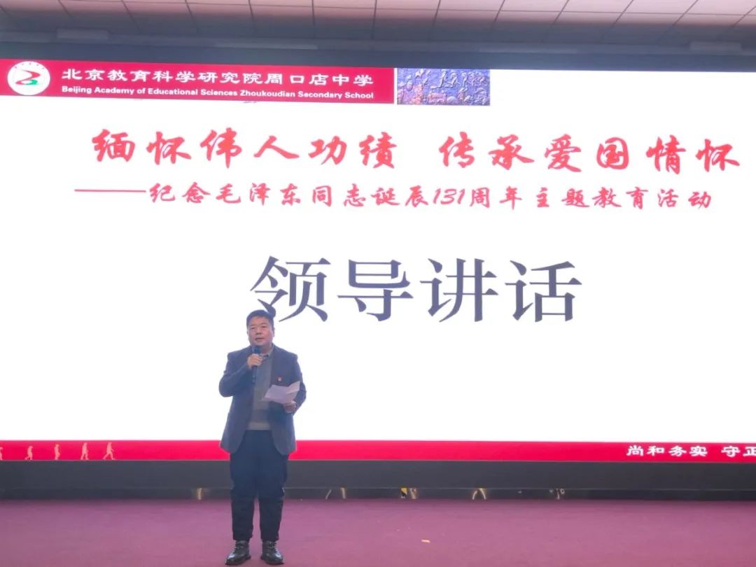 2024年12月26日,公司同北京教科院周口店中学顺利举办“缅怀伟人功绩,传承爱国情怀”纪念毛泽东同志诞辰131周年主题教育活动。