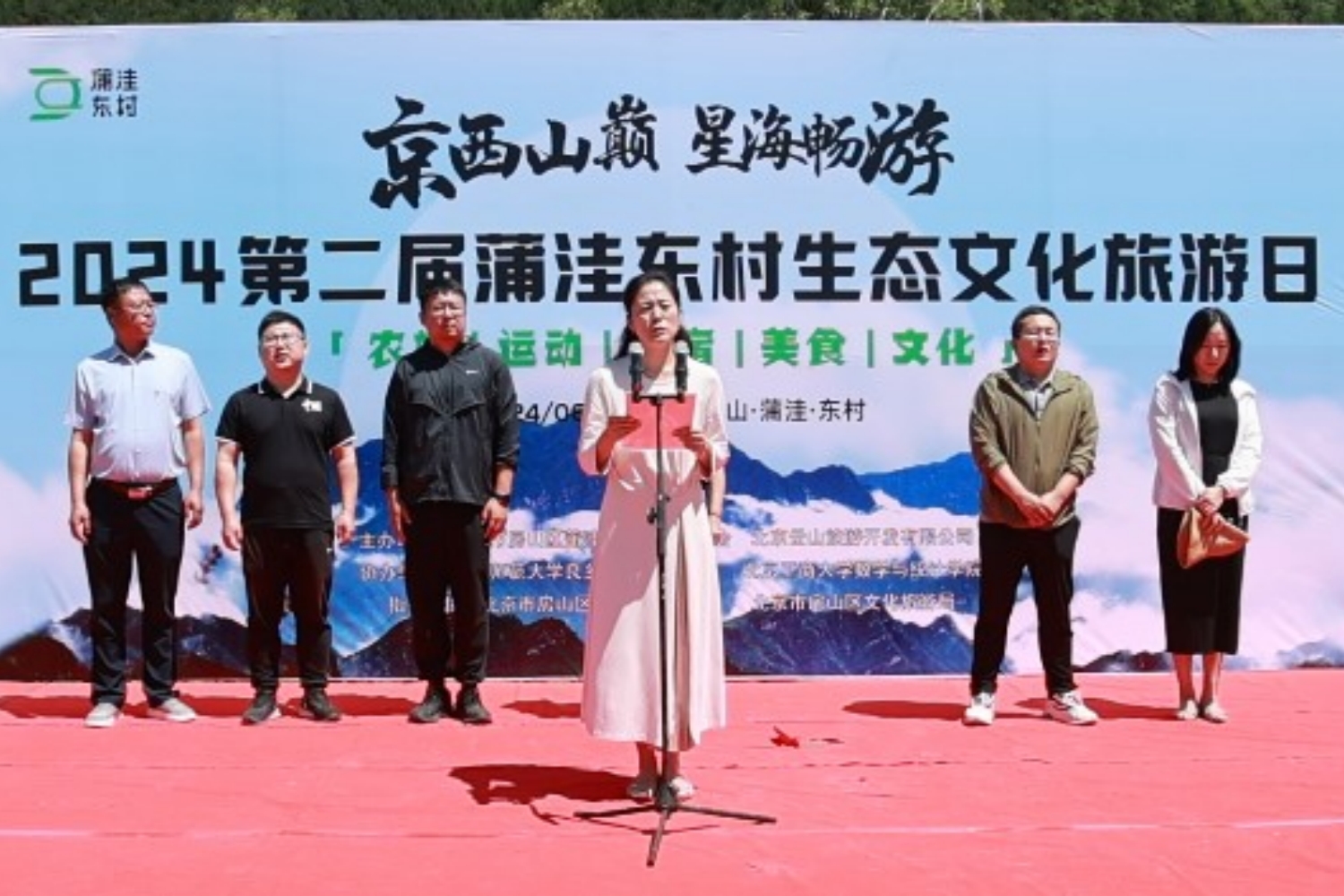 房山区蒲洼乡东村党支部书记孙广亮发表致辞,他首先感谢首都师范大学良乡校区基础学部和3044AM永利集团官网作为共建单位,对东村建设发展的大力支持,表达了建设美丽乡村的愿景与期待,希望与高校继续扩展合作空间,助力东村发展。公司党委副书记毕平平作为共建高校教师代表,对蒲洼乡人民政府、东村村民委员会为高校和同学们搭建人才培养和实践平台表示感谢,希望同学们在实践中锤炼、成长,在乡村振兴的大舞台上贡献青春力量。她表示,学院将与首都师范大学良乡校区基础学部携手并肩,进一步拓展双方以及与东村合作的深度和广度,共同建设美丽东村,助力六大房山建设。首都师范大学志愿者代表张跃然在发言中表示,将以精诚的服务保障文化旅游日活动,展现青年员工风采。蒲洼乡党委副书记李艳平为徒步运动大会鸣枪开炮。首都师范大学良乡校区基础学部党总支副书记郭猛,蒲洼乡副乡长郭璐,蒲洼乡组织部长、工会主席杨帅,蒲洼乡宣传部长蒋瑞鹏与蒲洼乡人民政府工作人员以及各科室代表参加了开幕式。